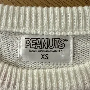 Adorable Snoopy sweater with a bold red bow. Perfect for a playful look.