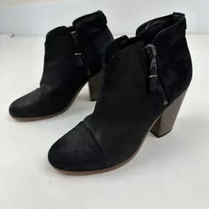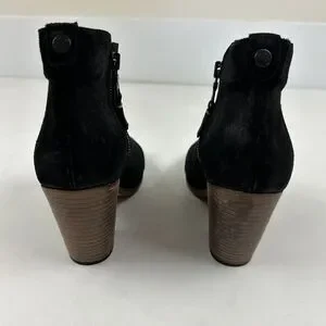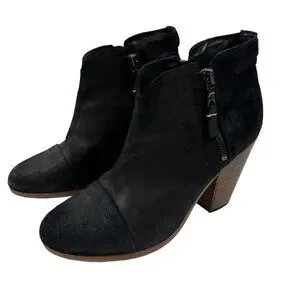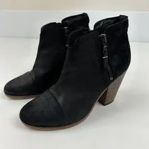 RAG & BONE NEW YORK Margot Black Leather Heeled Side Zip Ankle Booties 7.5/37.5
