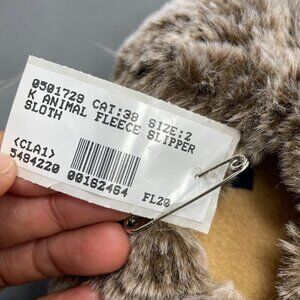 NEW Lands' End Kid's Size 2 Sloth Face Animal Fleece Slippers Kids Brown Plush