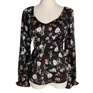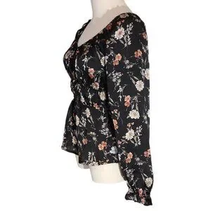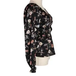 Papermoon Black Floral Empire Waist Long Sleeve Blouse New With Tags Women's S