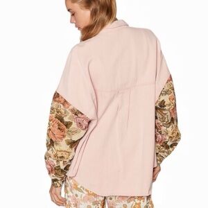 Tags: Boho, Bohemian, Tapestry, Floral, Feminine, Fun, Prairie, boho, bohemian, cottagecore, granola girl, flower child, cabincore, goblincore, farmhouse, farm, farmcore, woodsy, rustic, romantic, flowy, soft, Victorian, feminine, girly, gypsy, folk, shabby chic, rural, folklore aesthetic, coastal grandma, fall, autumn, POL, Shacket, Shirt Jacket, Oversized, Boyfriend Fit, NWT, New with Tags, SMT1165, Floral, Tapestry, Jacquard, Patchwork, Contrast, Mixed Media, Pink, Blush, Rose, Mauve, Multi, Boho, Bohemian, Cottagecore, Prairie, Western, Vintage, Retro, Layering, Jacket, Coat, Shirt, Button Down, 100% Cotton, Cozy, Comfortable, Casual, Boutique