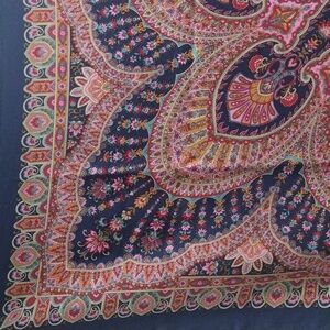 This Bella Rosa vintage scarf features a vibrant and colorful design on 100% silk, measuring 34x34 inches. In excellent condition, this large silk scarf exudes elegance and style, making it a perfect accessory for any wardrobe. It is Ideal for casual and formal occasions and showcases the brand's dedication to high-quality craftsmanship and timeless fashion.