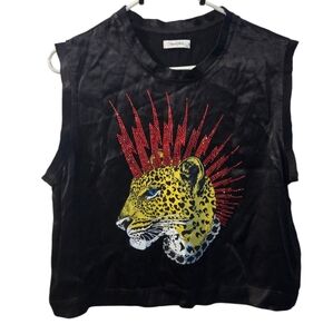 NWT Lauren Moshi Crystal Linette Punk Leopard tank Top