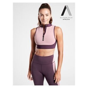 ATHLETA Allyson Felix Legend Mesh 7/8 Agate Purple YOGA legging and crop top