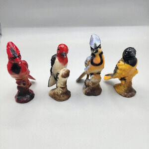 Vintage Set 4 Celluloid Bird Figurines 40-50s 2.5" Cardinal Blue Bird Plastic