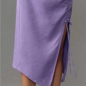 NWT! Anthropologie Lavender Ruched Side Slit Linen Midi Skirt