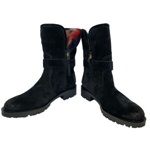 Sam Edelman Jeanie Black Suede Fur Lined Moto Combat Chelsea Boot Size 7M