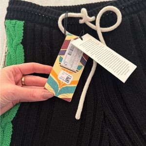 Stylish knit joggers with vibrant green cable-knit side panels. Features a comfortable elastic waistband with drawstring.