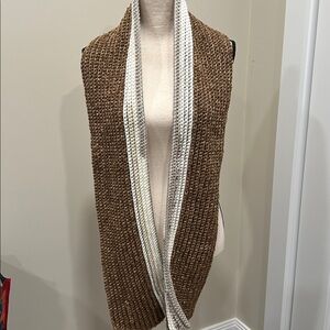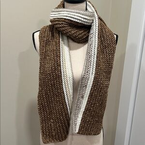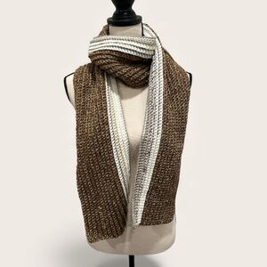 Cozy knit scarf in brown and cream. Perfect for chilly days.