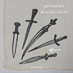 Please note a few spots of very faint discoloration. So faint that I had to put a piece of printer paper under the scarf and you can still barely see it.