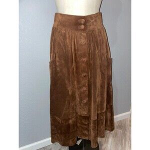 Leather School Italy Suede Maxi A-Line Skirt size L Button Front Western
