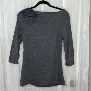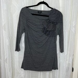 Deletta Anthropologie Ruffle Shoulder Boho Top | Gray | Size Large