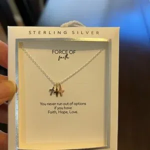 Sterling Silver Necklace with Tri-Color Cross Charms