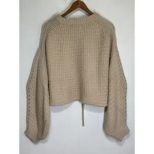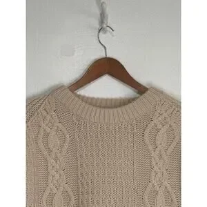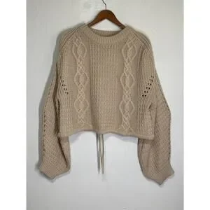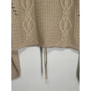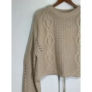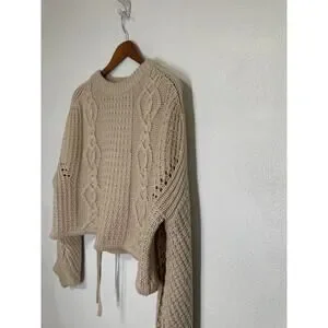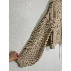 Gianni Bini Oversized Crop Chunky Cable Knit Fishermen Sweater M Cream Designer