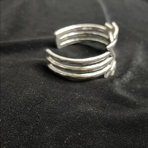Stylish silver cuff with a bold zigzag design. Adds flair to any outfit.