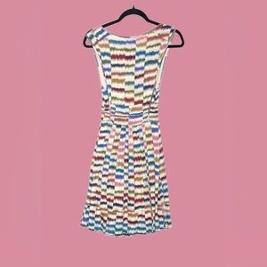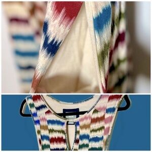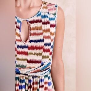 Anthropologie Mauve Sennebec Colorful, A-Line, Keyhole Above-Knee Sleeveless Midi Dress with Pockets and Slight Front Gathering to Highlight the Waist. Very soft, stretchy, comfy, and figure-flattering statement piece.