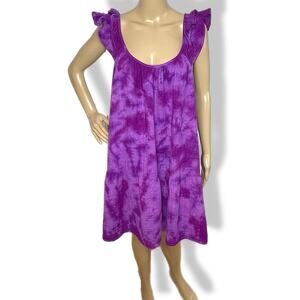 handmade tie dyed ladies' dress ruffle sleeveless XXL purple