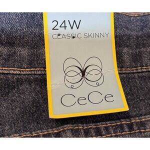 CeCe Women's Blue Skinny Jeans 24W Plus Size Faux Pearl Detail Stretch Denim