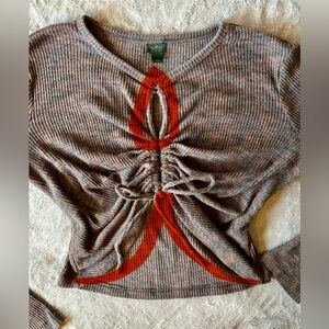 Wild Fable - Brown Ribbed Long Sleeve Top With Cut-Outs