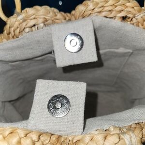NWT Stylish straw tote with teal floral design. Ideal for any casual outing. The top has a snap closure and there is an inner pocket for added organization. The teal flowers seriously elevate the look of this bag. Very Cottagecore and Feminine.