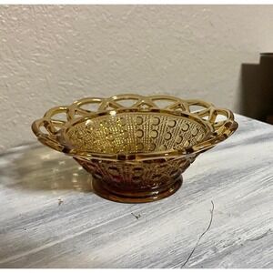Vintage amber glass candy dish/ Imperial glass/scalloped...