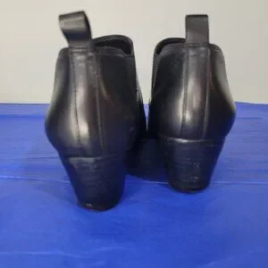 Stylish and comfortable. Minimal wear, like new but for walking crease. A little polish will make these booties smile up anew😃 Great condition.