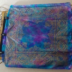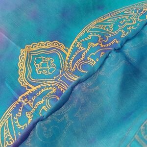 NWOT Turkey Silk Hand-Rolled Hem Gold Pattern Scarf