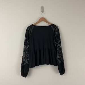 Free People Penny Black Embroidered Sleeve Peplum Top Size XS