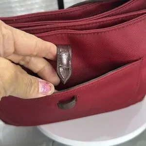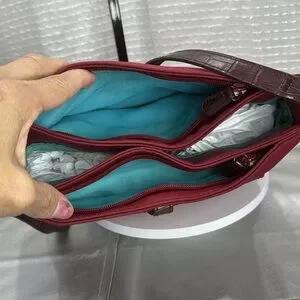 *in good used condition, a little dirty inside but the lining is removable and can be washed, see photo for details This elegant burgundy shoulder bag is perfect for any occasion. Its rich color and stylish design make it a must-have accessory.
