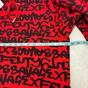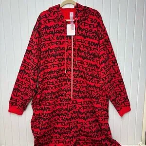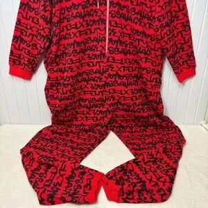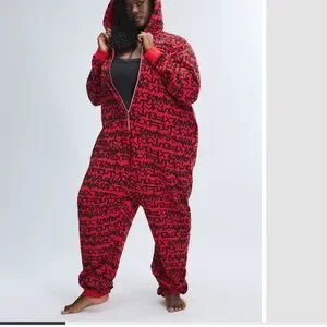 Savage X Fenty By RIHANNA HOODED ONESIE Red Black Graphic Jumpsuit Size 22-24