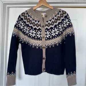 Boden Chunky Navy Fair Isle Sweater Cardigan M Wool Blend