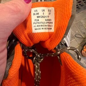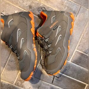 Merrell athletic shoes/ hiking boots for men or big boys - size 6. Gray exterior with vibrant orange accents. Designed for performance and comfort.