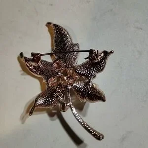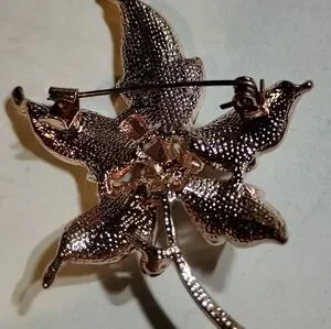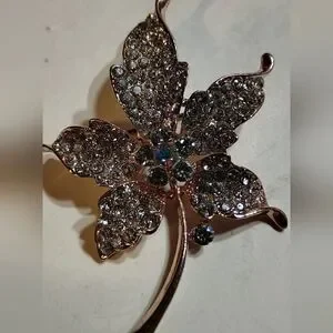 This exquisite silver toned brooch is designed to resemble a five-petaled flower, featuring a shimmering metallic finish. The surface is adorned with sparkling rhinestones, adding a touch of elegance and sophistication to any outfit.