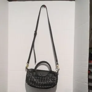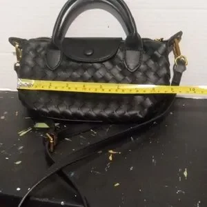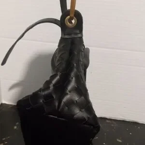 Discover elegance with this black woven bag. Its sleek design and classic color make it a versatile accessory for any occasion.