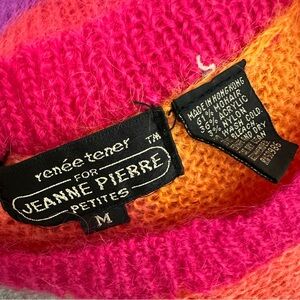 Vintage Renee Tener for Jeanne Pierre Colorful Mohair Blend Sweater Size Medium Petite. Gently worn in excellent condition. Underarm to underarm measures 18 inches and length is 22 inches.