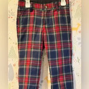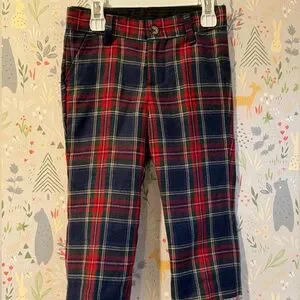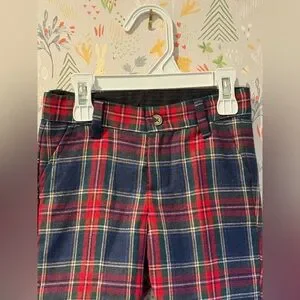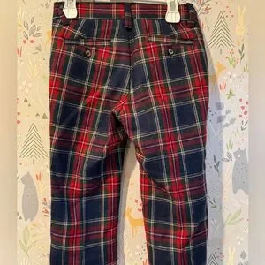 Adorable preppy plaid pants perfect for Christmas, Valentine’s Day, winter time, family photos, or just a really cool fancy little boy. Adjustable straps inside with buttons to make the waist a little tighter or looser. Belt loops and fake flat pockets. Nice quality material. Like new condition. 18 - 12 Months.