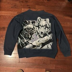 Vintage Hanes Alaska Wolf Graphic Men's Crewneck Sweater - Dark Gray Size: Large