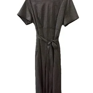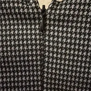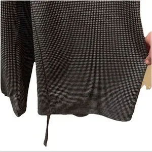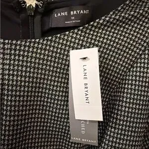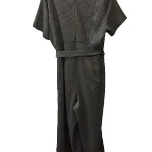 Chic shimmery jumpsuit with a classic black and metallic silver pattern. Features a stylish belt for a flattering silhouette. Ideal for versatile wear. The Lane Bryant Women's Jumpsuit in size 16W is a stylish and versatile piece that can be worn for various occasions such as travel, weddings, parties, formal events, and more. This black jumpsuit features a round neckline, pullover closure, and a wide-leg design with a houndstooth pattern and silver accents. Made from a polyester blend knit fabric with a 26-inch inseam, it is easy to care for, stretchy, breathable, and resistant to wrinkles. Perfect for all seasons, this jumpsuit is a fashionable and flattering choice for any wardrobe.