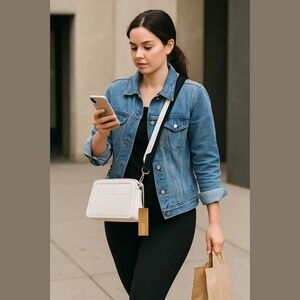Steve Madden Bevie Satchel/Cross Body Bag/Clutch w/ Air Pod Case Pouch Pumice