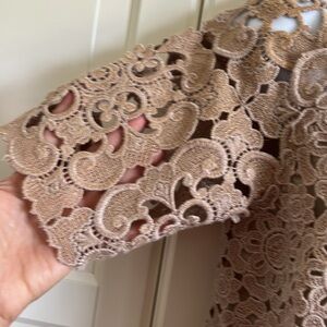Vivienne Tam Vintage Purple Label 3D Floral Lace Cheongsam Top Tan Small