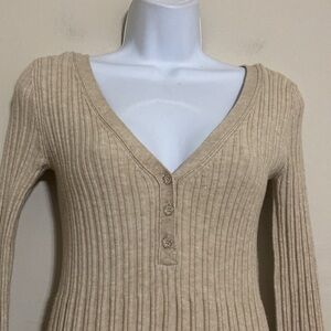 Anthropologie Daily Practice women XS Bell-Sleeve Sweater Beige Knit y2k casual