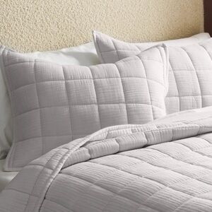 NWT QUINCE Organic Airy Gauze Box Quilt Sham Set Standard Fog Grey 3514