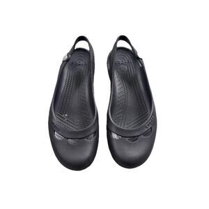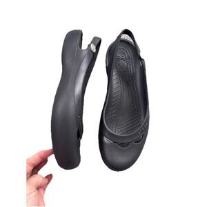 Crocs Jayna Women 10 Black Slingback Ballet Flats Slip On Jewel Flower Mary Jane
