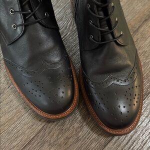 The 1.5-inch heel provides subtle lift while maintaining day-long comfort. A lace-up front ensures adjustable styling, complemented by a side zip fastening for ease of wear. Intricate brogue detailing adds a classic touch to the rounded toe, while the camel calf leather lining and memory-foam insole deliver superior comfort and luxury.