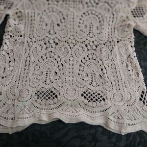 Keren harts This elegant cream lace top is perfect for any occasion. Its intricate design adds a touch of sophistication to your wardrobe.