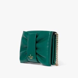 The Kate Spade Green Crossbody Bag is a chic and versatile accessory, perfect for adding a pop of color to any outfit. Crafted in a rich emerald hue, this bag features a sleek, minimalist design with a gold-toned chain strap for a touch of elegance. Its structured shape and flap closure make it both stylish and functional, ideal for everyday use or special occasions.