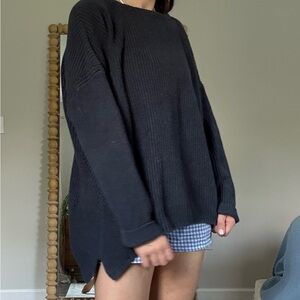 Poetry Fisherman Knit Organic Cotton Sweater. Navy blue color. Longer at sides. Boatneck style. Size 14 US. Some light fading from wash, otherwise very good condition.