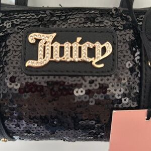 The Juicy Couture Black Sequin Crossbody Bag combines elegance with functionality, featuring a shimmering sequin exterior and a sleek cylindrical design. This versatile bag is perfect for evening occasions, with its adjustable shoulder strap and iconic gold logo adding a touch of glamour. Ideal for those who appreciate a blend of style and practicality.
