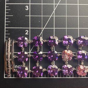 Elegant 3-row bracelet featuring baby pink and lavender stones, arrives in original box for gifting or safekeeping.