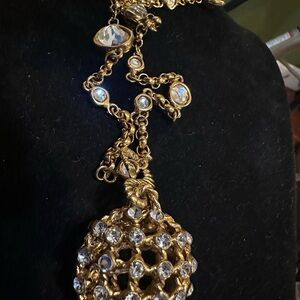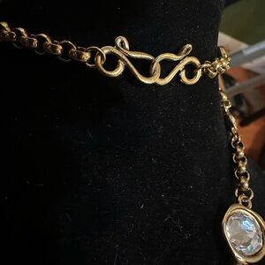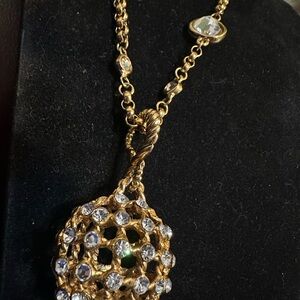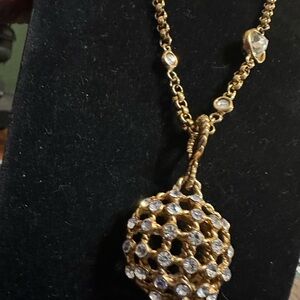 Elevate your style with the Blanca Gold Pendant Necklace, a stunning piece that captures the essence of elegance. This necklace features a 36-inch adjustable gold-tone chain, adorned with a clear crystal ball pendant that sparkles with every movement. Perfect for special occasions, this necklace adds a touch of sophistication to any ensemble, whether it's a gala, wedding, or an evening out. The lobster closure ensures a secure fit, making it a reliable choice for your jewelry collection. Pre-owned and in excellent condition.